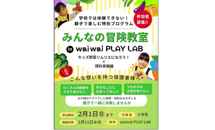 学校では体験できない!親子で楽しむ特別プログラム「みんなの冒険教室 in waiwai PLAY LAB」 参加者募集!