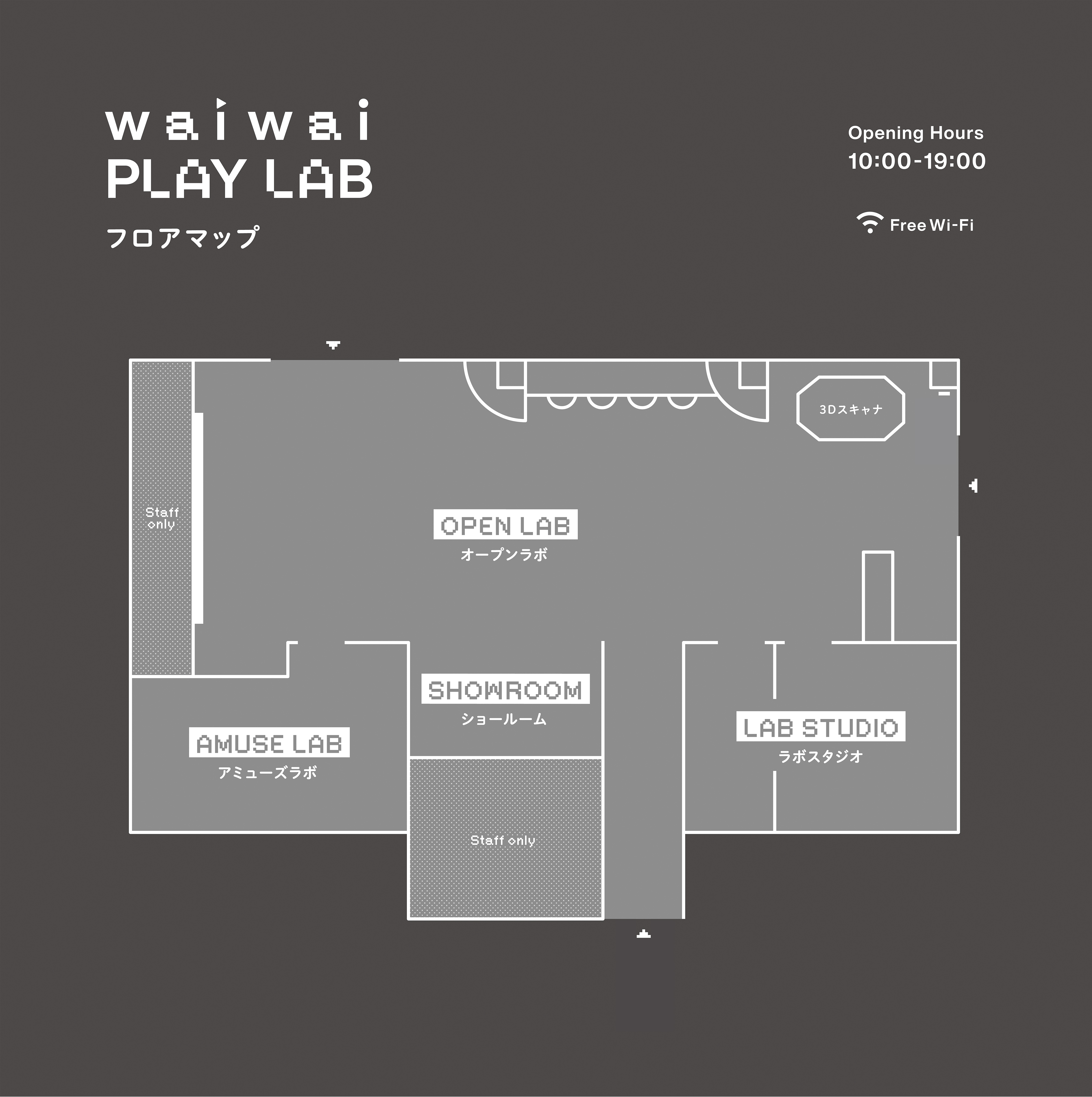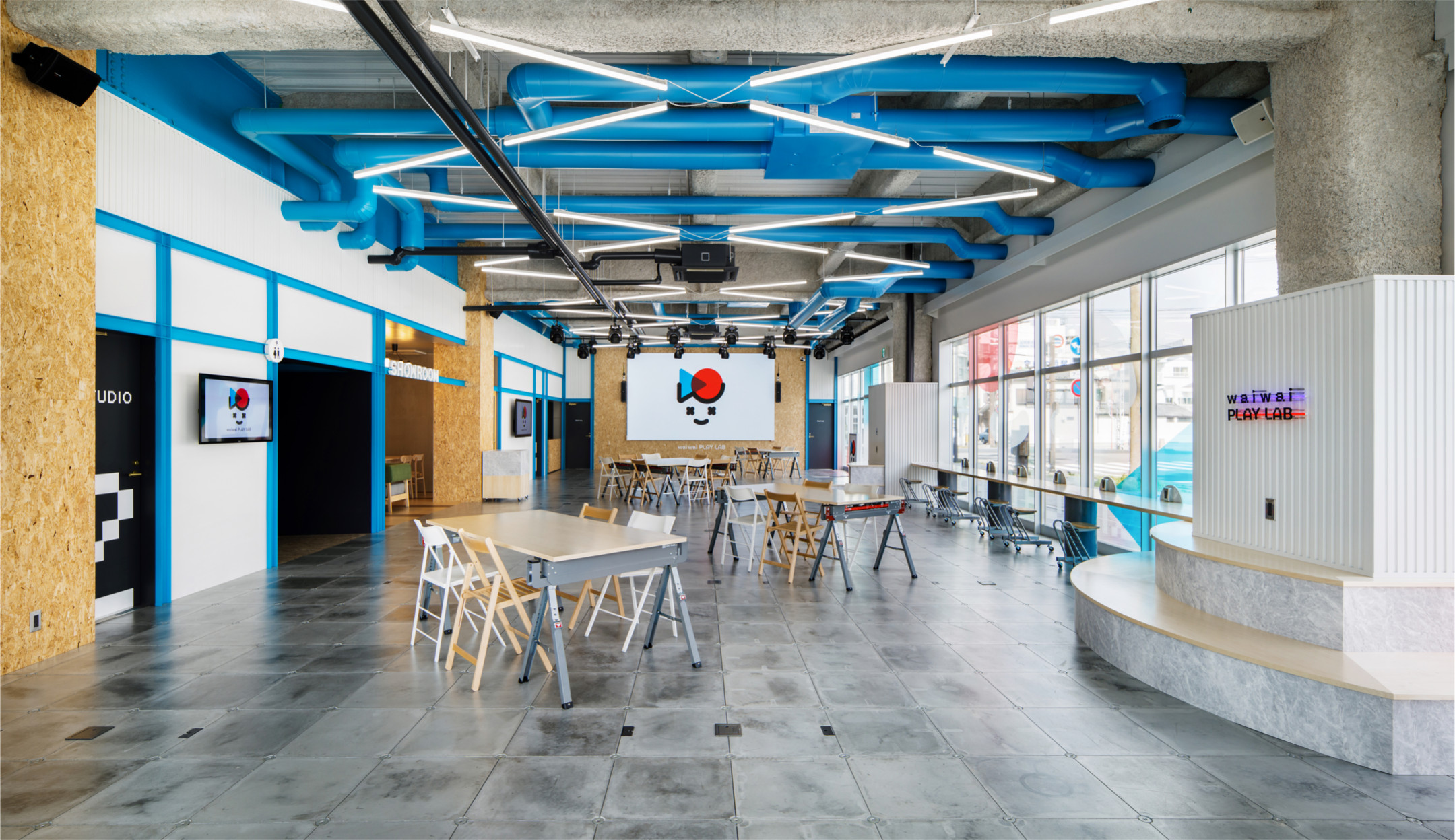 waiwai PLAY LABは、“動画エンターテインメントを拡張するTechnology×Movieラボスペース“をコンセプトに、 動画制作をメインに「Technology」「Entertainment」「Education」の要素を取り入れ、 先端テクノロジーや動画エンターテインメントで遊べる・学べる・発信・交流できる機会を提供するオープンスペースです。